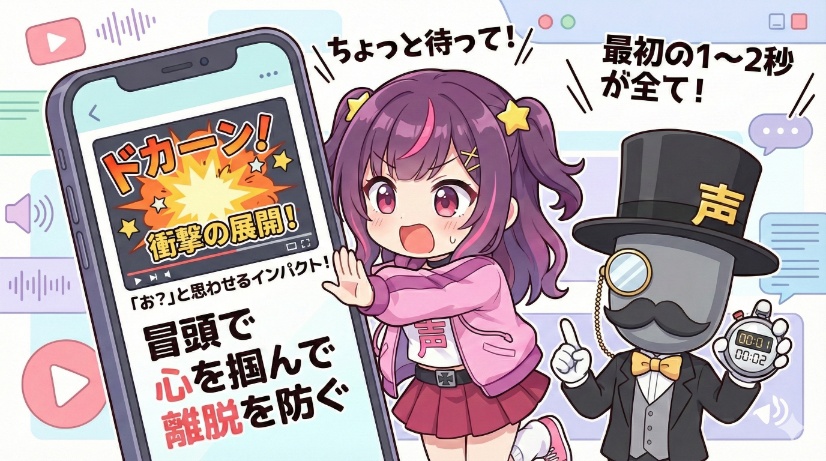たとえば、最初の数秒でインパクトを与えたり、テンポよい編集や音楽と効果音で盛り上げたり、字幕やテキストの活用など、他にもいろいろな工夫が必要なんですよね。