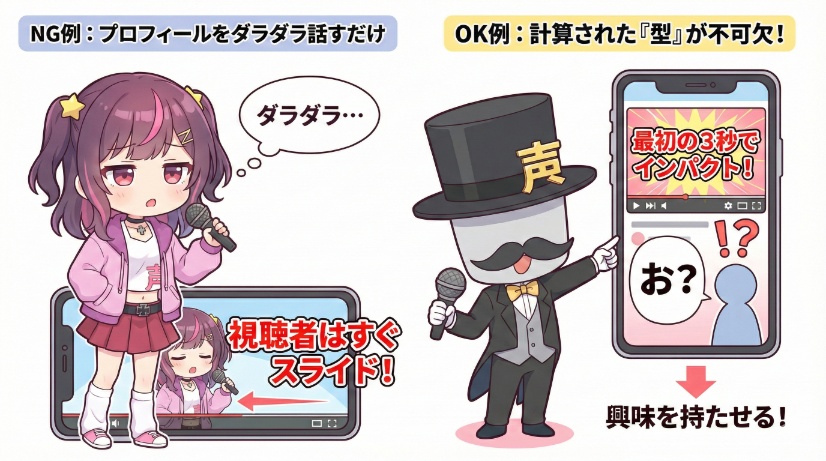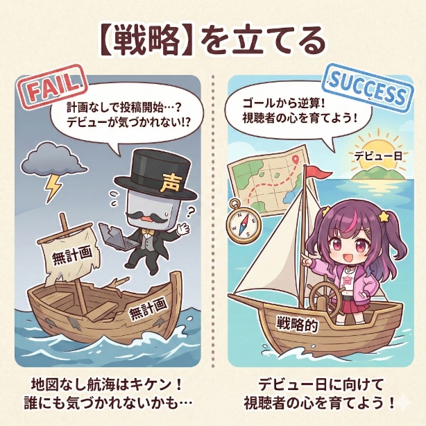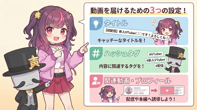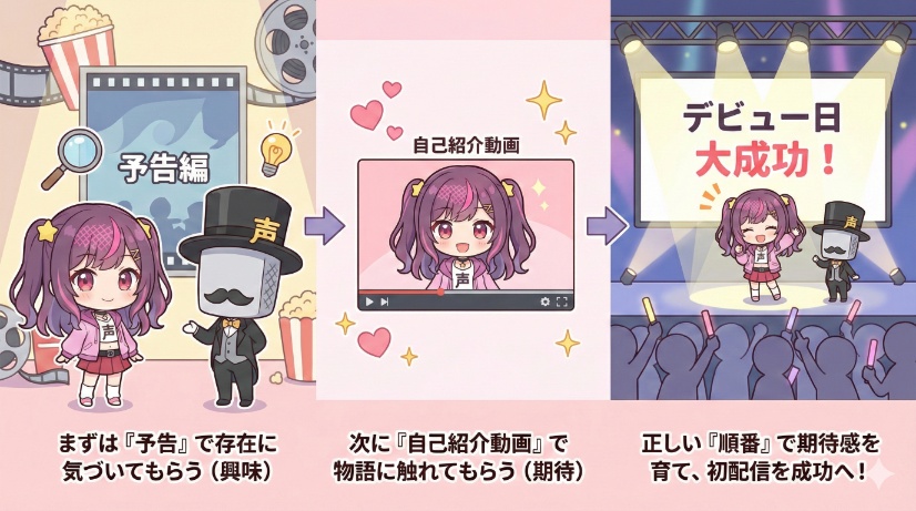 Vtuber準備中の人にオススメのショート動画を投稿 “内容” と “順番” について以下記事で詳しく紹介していますので、興味があれば参考にしてみてください。