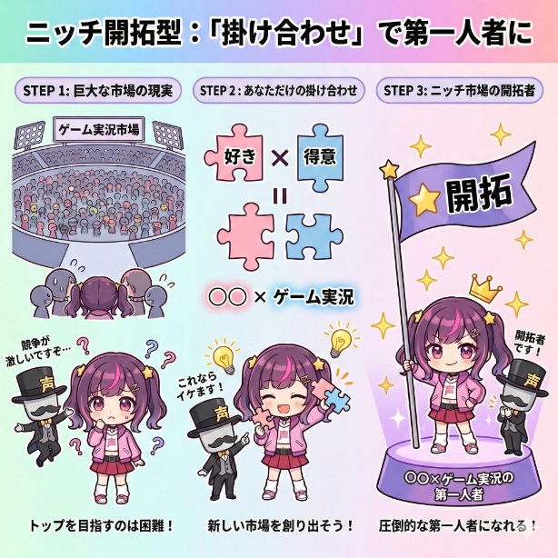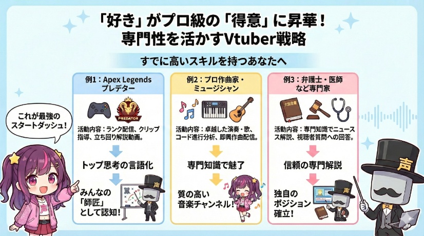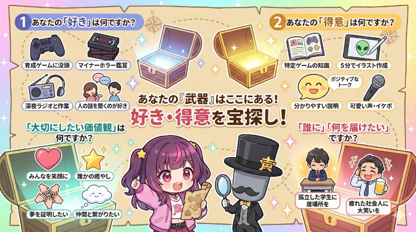 「〇〇といえば、この人」という分かりやすい専門性やブランドイメージがあれば、数多くのVTuberの中からあなたが見つけ出され、声をかけてもらえる確率が格段に高まります。