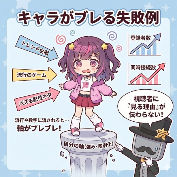 数多くのVTuberが活動する今、「面白い」「可愛い」だけではすぐに埋もれてしまうのが現実です。その根本的な原因は、あなた自身の魅力を正しく伝えきれていない、つまり「VTuberのブランディング」が明確でないことにあるのかもしれません。