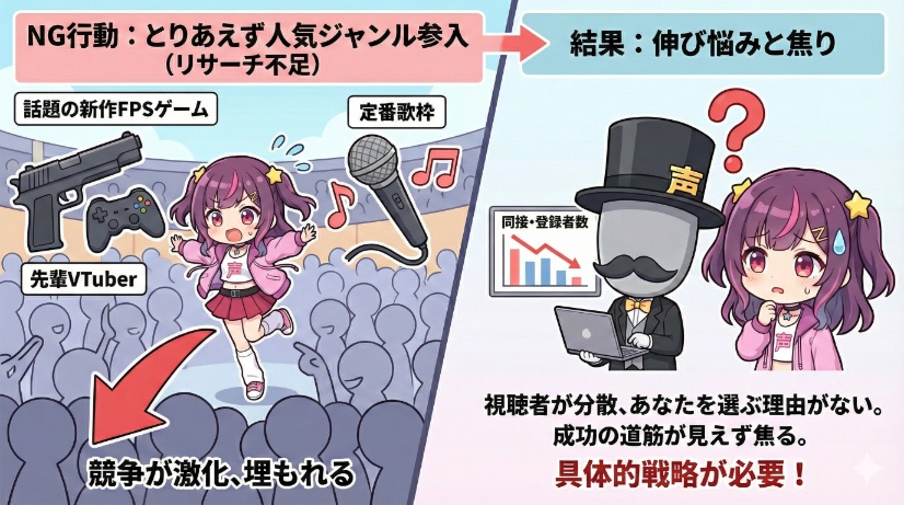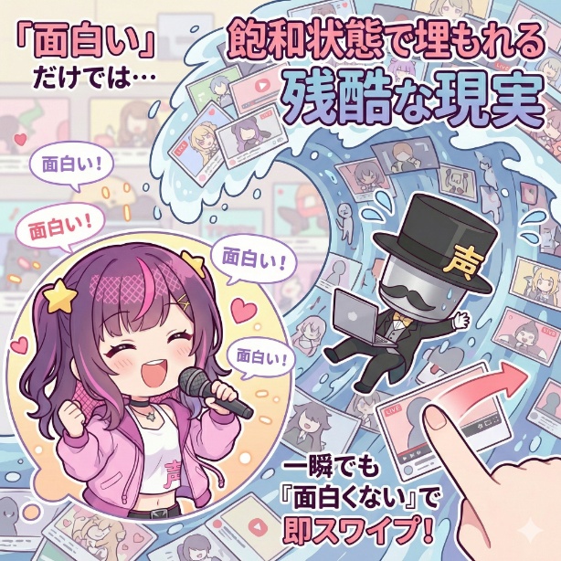 まず受け入れるべきなのは、現在のVTuber業界では、配信が「面白い」だけ、企画が「ユニーク」なだけでは、残念ながら成功を掴むのが極めて難しいという残酷な現実です。