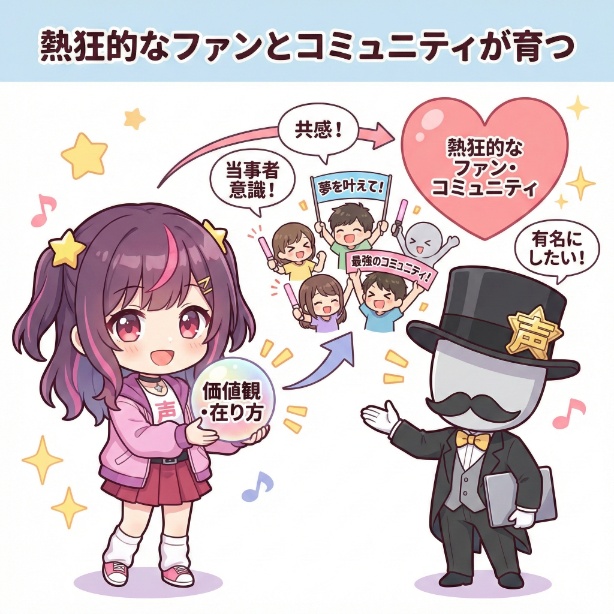 なぜなら、人は単に面白いコンテンツを消費するだけでなく、その人が掲げる「価値観」や「在り方」に心から共感した時、「この人を自分の手で有名にしたい」「この人の夢を応援したい」という強い当事者意識を持つようになるからです。