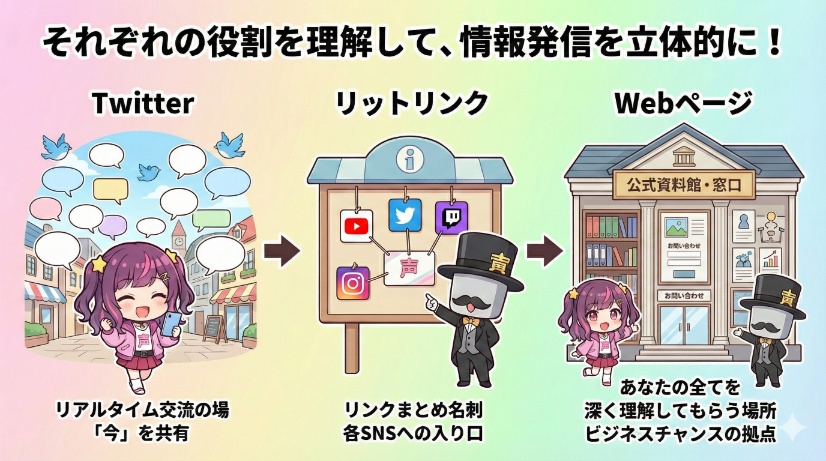 それぞれのツールには、異なる役割があります。Webページを持つことで、あなたの情報発信はより立体的になるでしょう。
