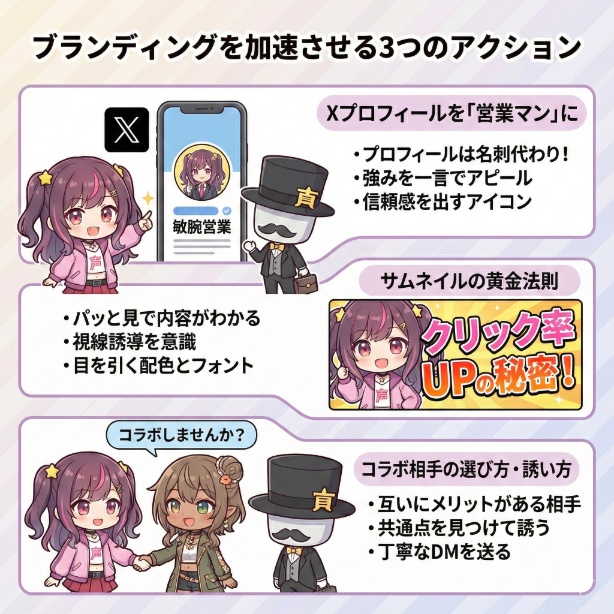 だからこそ、リソースの差を嘆くのではなく、自分だけの魅力を最大限に活かす「セルフブランディング」こそが、個人勢にとって最強の武器となります。