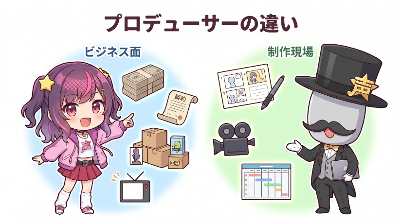 役割: プロジェクト全体の責任者。資金調達、予算管理、企画立案、宣伝戦略、グッズ展開、放送局との交渉など、ビジネス面を担当します。
