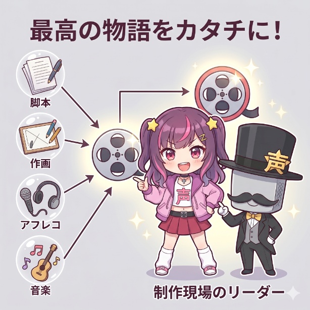 なぜなら、アニメは脚本、作画、声優、音楽といった多様な専門分野の集合体であり、それらを一つの明確な方向へまとめ上げなければ、視聴者の心を打つ作品にはならないからです。