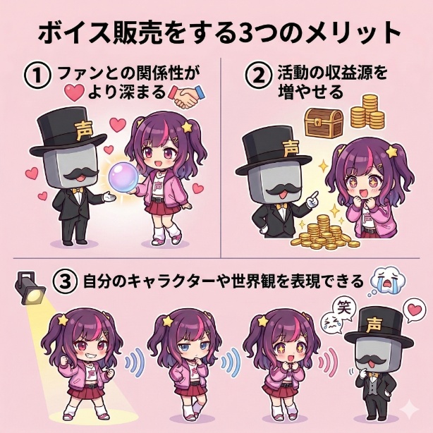 ボイス販売には、VTuber活動を加速させる大きな以下3つのメリットがあります。