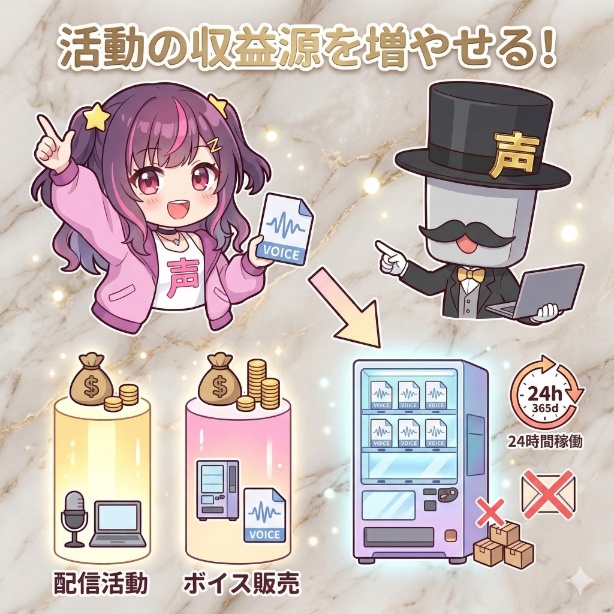 ボイス販売は、配信での収益とは別に、あなたの活動を安定させる「第2、第3の収益の柱」を作れる、とても心強い方法です。