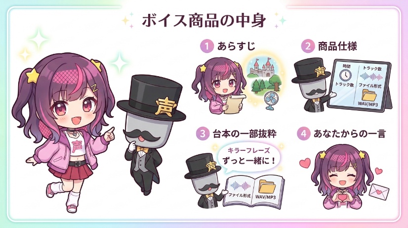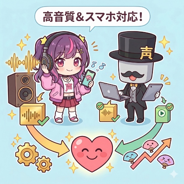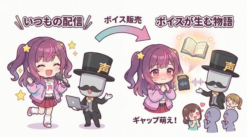 このように、あなたのキャラクターの魅力を最大限に活かし、ファンが求める「特別な一対一の時間」を届けられるシチュエーションボイスは、VTuberのボイス販売における最強のジャンルです。