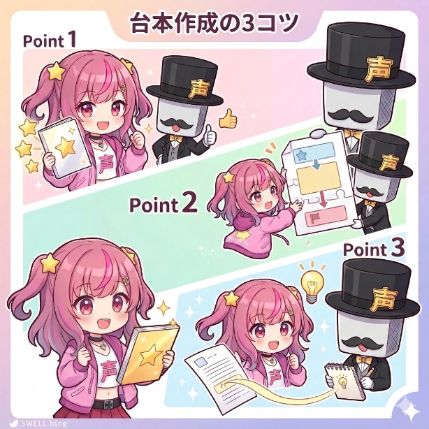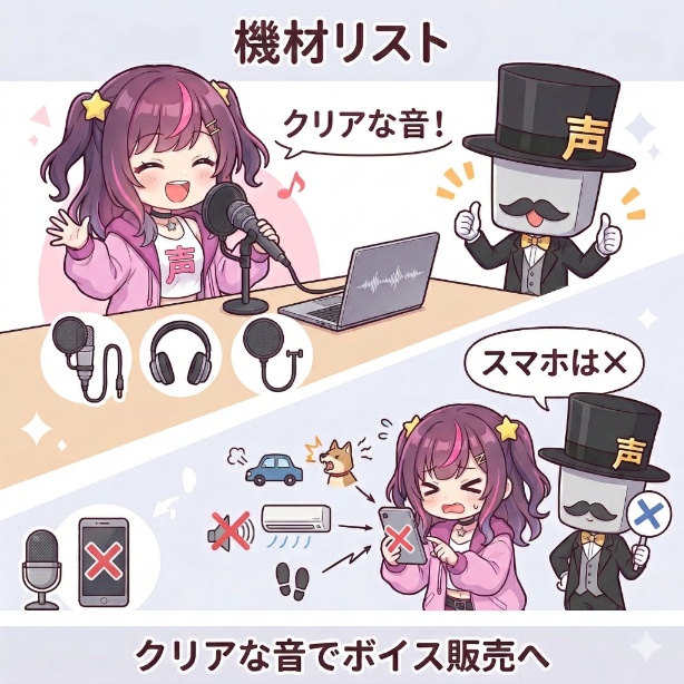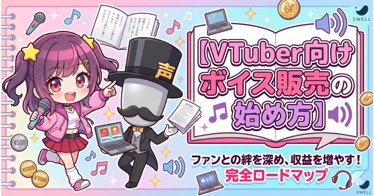 この記事を読めば、ボイス販売の始め方が5つのステップで理解できるだけでなく、多くの人がつまずくシチュエーションボイスの台本作りや、失敗しない値段設定のコツまで、必要な知識をすべて学べます。