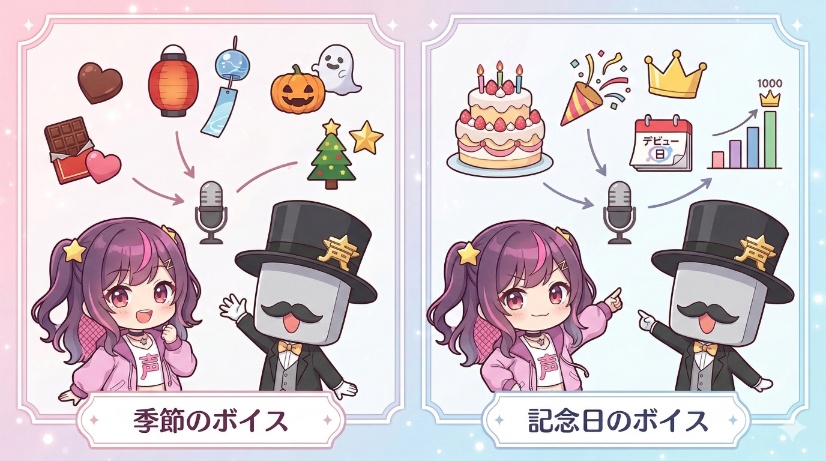 例えば、大手VTuber事務所のタレントは、記念日や季節のイベントごとに特別なシチュエーションボイスを販売し、毎回大きな話題と収益を生んでいます。