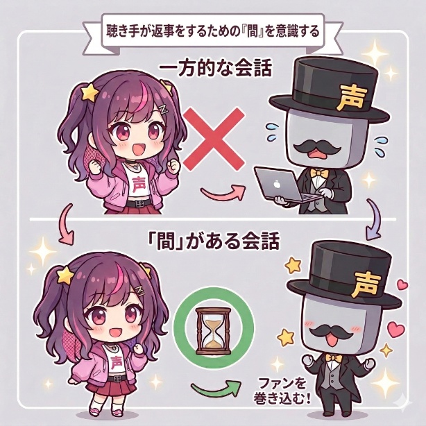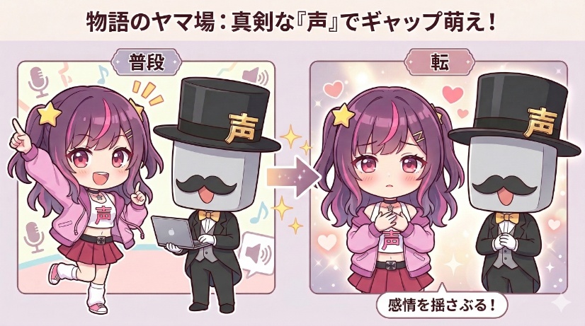 特に、普段の配信では見せない真剣な姿や、二人きりの時にだけ甘える姿を演じれば、その「ギャップ萌え」は絶大な効果を生むはずです。