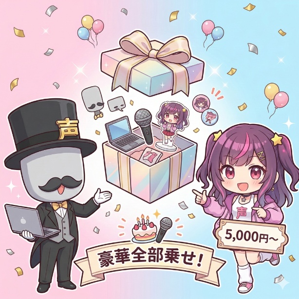 過去に販売したボイスをまとめて、少し割引したセット。1年間の活動の集大成として販売するVTuberさんが多いです。 - 限定グッズセット