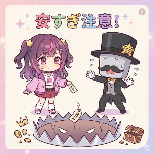 一度「このVtuberのボイスは安い!」とイメージが付くとなかなか単価を上げ辛くなるので注意です!