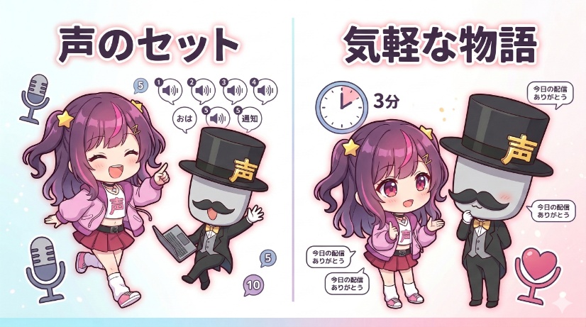 リアルタイムの配信は楽しいですが、その楽しさはその瞬間だけのもの。ファンは「配信時間外でも、あなたの声にもっと癒されたい」「自分だけの特別なメッセージが欲しい」と願っています。