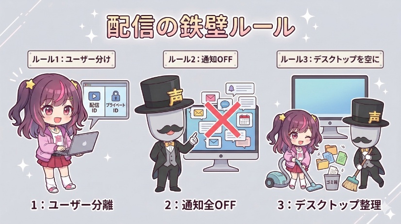これらは全て、人前に立つ「プロの配信者」として当然求められる意識だからです。