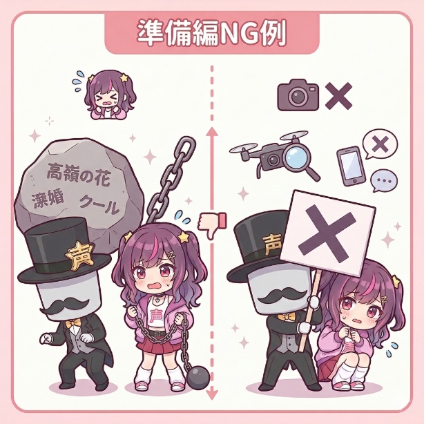 デビュー準備段階でのNG行動から配信・SNSでの具体的な注意点まで、後悔しないためのNG行動を網羅的なリストにしましたので、ぜひ参考にしてみてください。