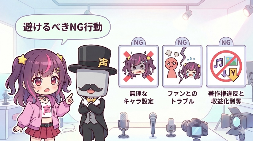 Vtuberとして活動する上で「やってはいけないこと」を事前に知っておくことは、あなたの活動生命を守るための最重要事項です。