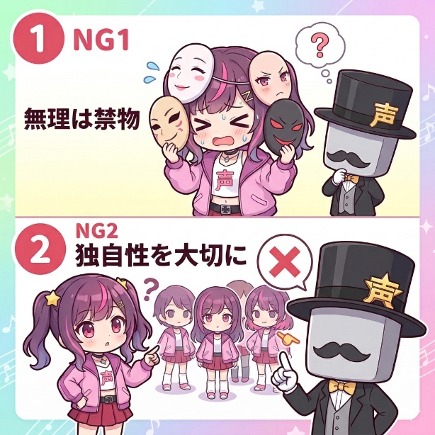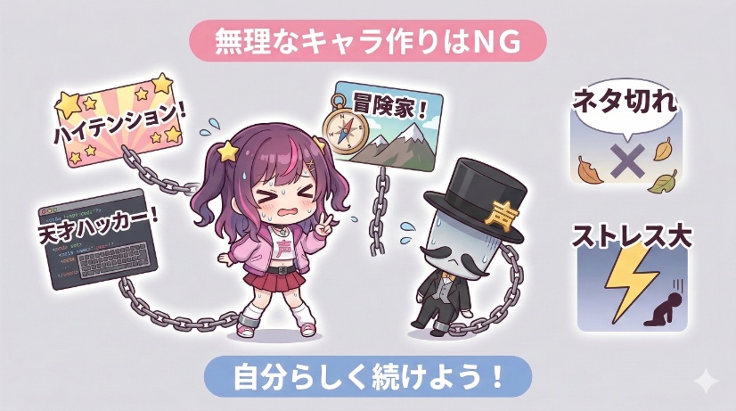 なぜなら、無理なキャラクターは「自分」と「ファン」の両方を裏切る結果に繋がりかねないからです。