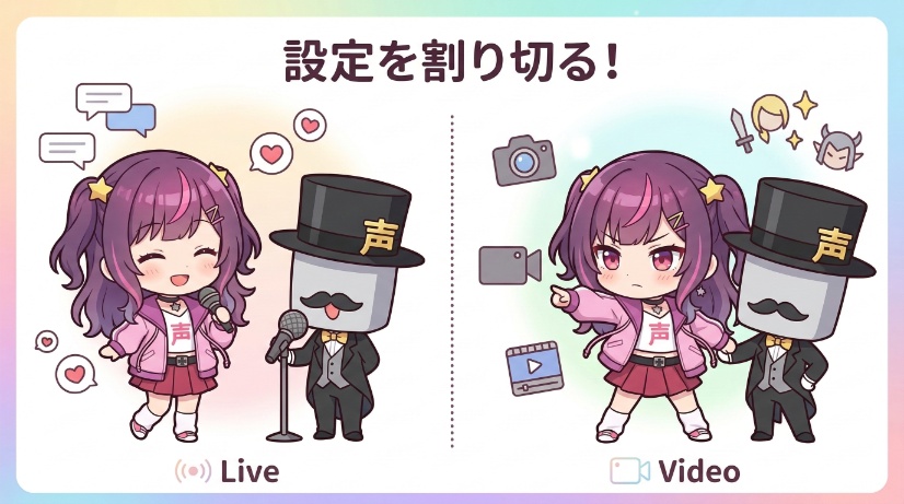 最初からそのスタンスを明確にしておけば、デビュー後にファンが「動画とライブで性格が違う…」と戸惑うのを防ぎ、安心して応援してもらうことができます。