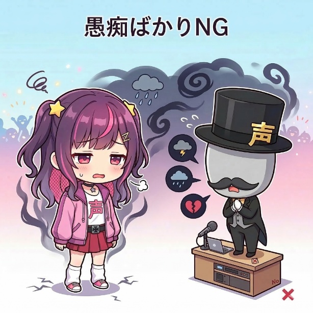 心無いアンチコメントに対し、V子は「嫌なら見ないでください!」と感情的に反論。一部のファンは喝采しましたが、他の多くのファンは「少し怖い人かも…」と不安を覚えました。 - NG行動②:特定のファンへのえこひいき