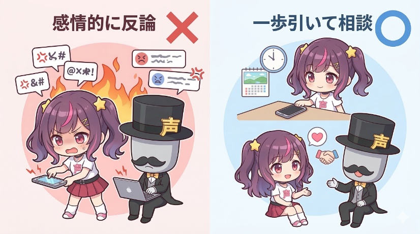 まずはSNSから少し距離を置き、信頼できる人(友人や事務所のマネージャーなど)に相談して客観的な意見を求めましょう。