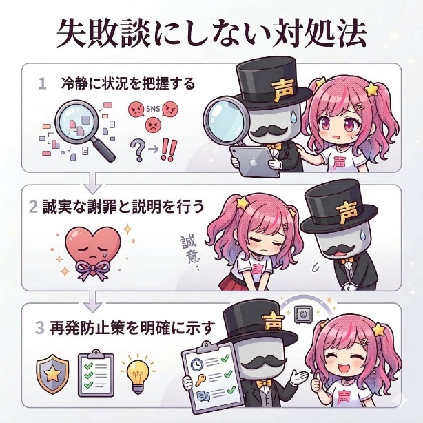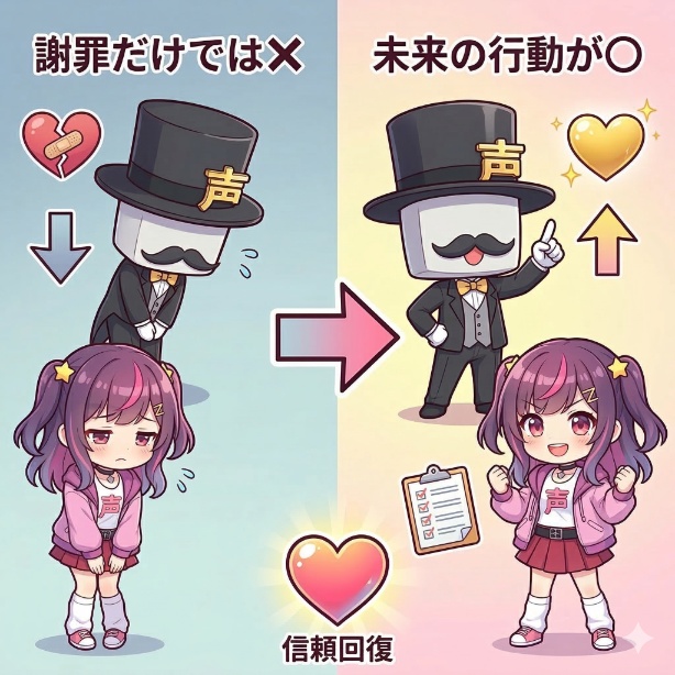 ファンからの信頼を真に回復するためには、謝罪の言葉だけでなく、「二度と同じ過ちを犯さない」という具体的な行動計画、すなわち再発防止策を明確に示すことが不可欠です。