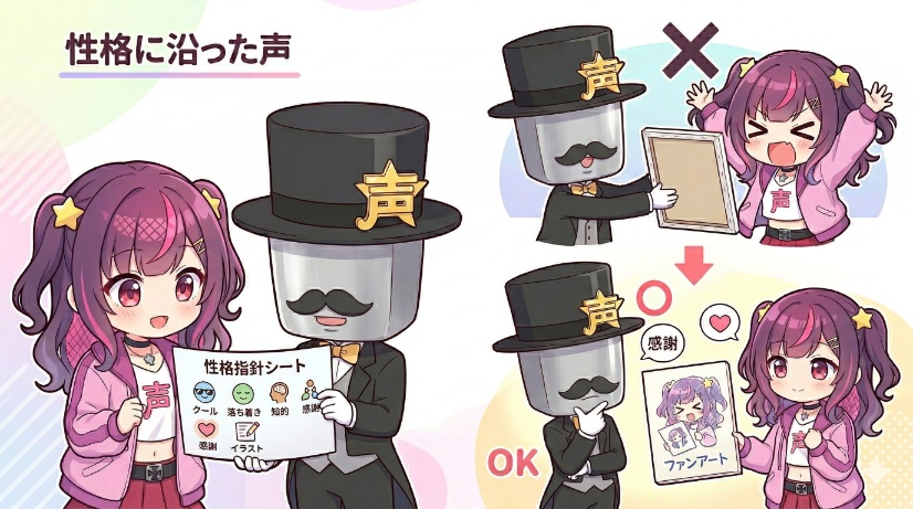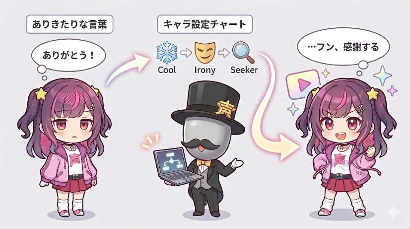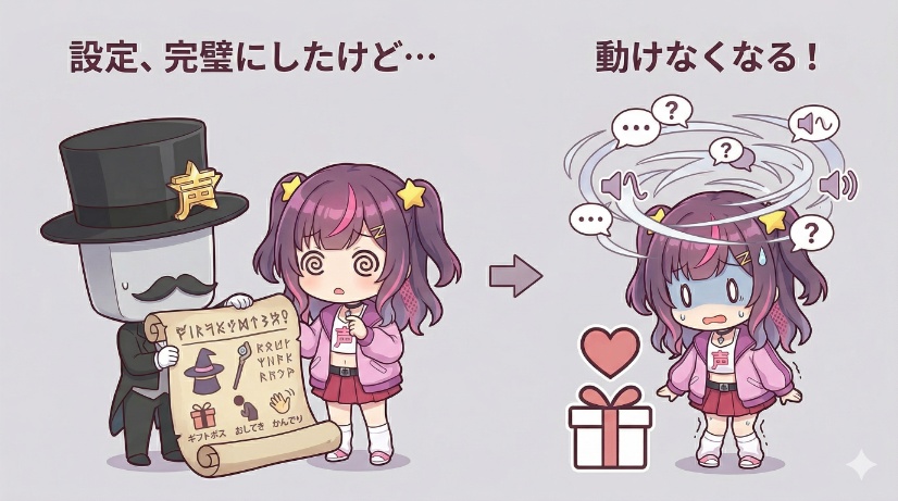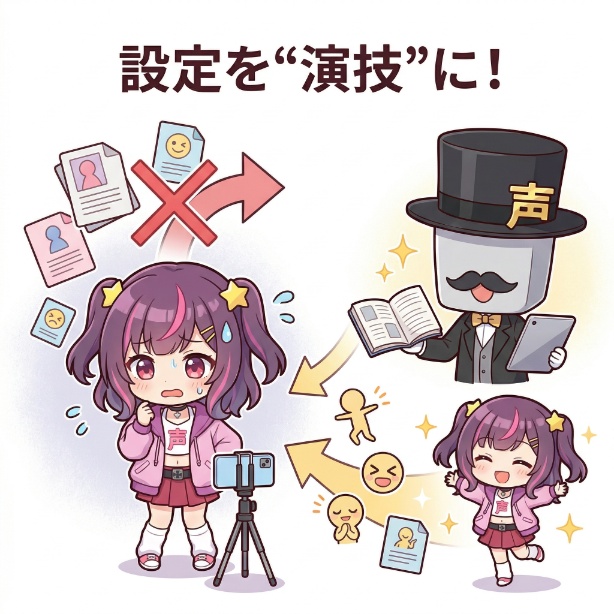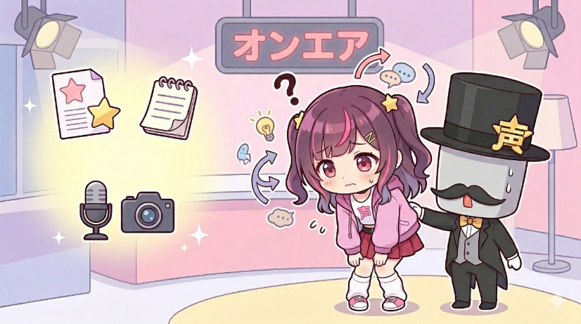 VTuberのキャラ設定や動画企画は完璧。なのに、いざカメラを前にすると「このキャラなら、どう振る舞えば…?」と、手が止まってしまっていませんか?
