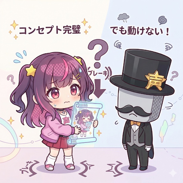 皮肉なことに、キャラクターのコンセプト作りを真剣に頑張った人ほど、「どう演じればいいか分からない」という壁にぶつかってしまう可能性があります。