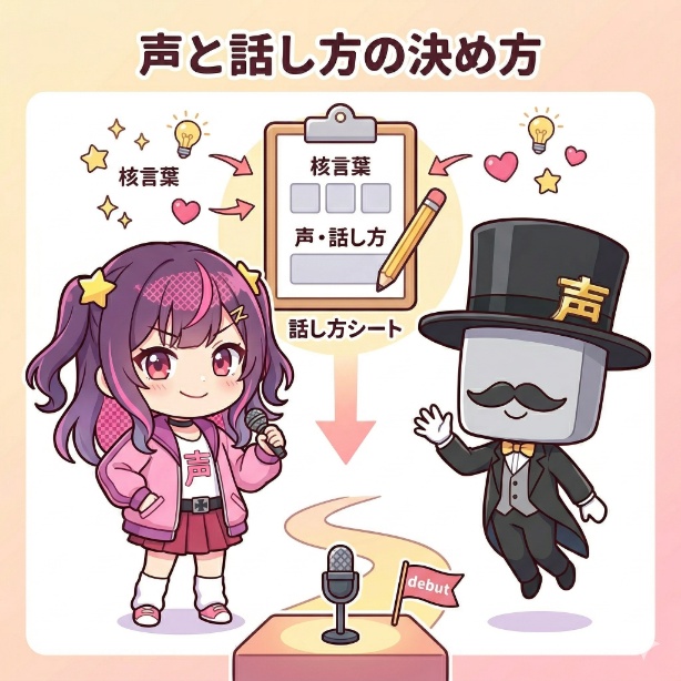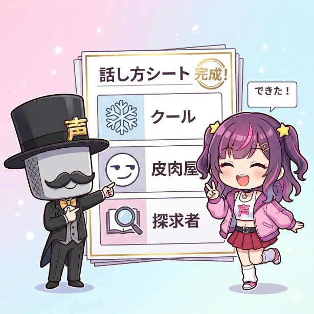 この「話し方シート」が完成したことで、V子さんは「普段はどう振る舞い、どこでギャップを見せるか」という、具体的な演技の指針を手に入れました。