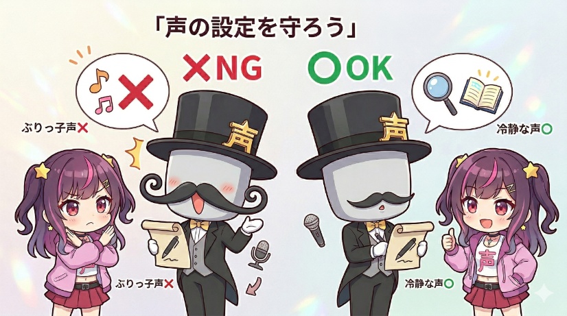 それなのに、いざ収録しようとすると「このキャラらしい話し方って?」「どんな言葉遣いが正解なの?」と、正解のない問いに頭を悩ませ、動けなくなってしまう…。