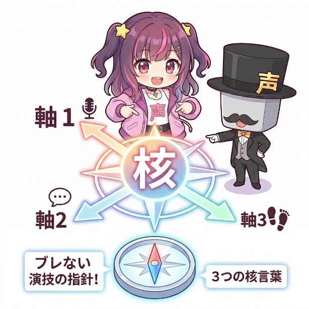 なぜなら、この3つの言葉が、今後のあなたの演技すべてにおける判断基準となり、キャラクターのブレを防ぐ「絶対的な軸」になるからです。