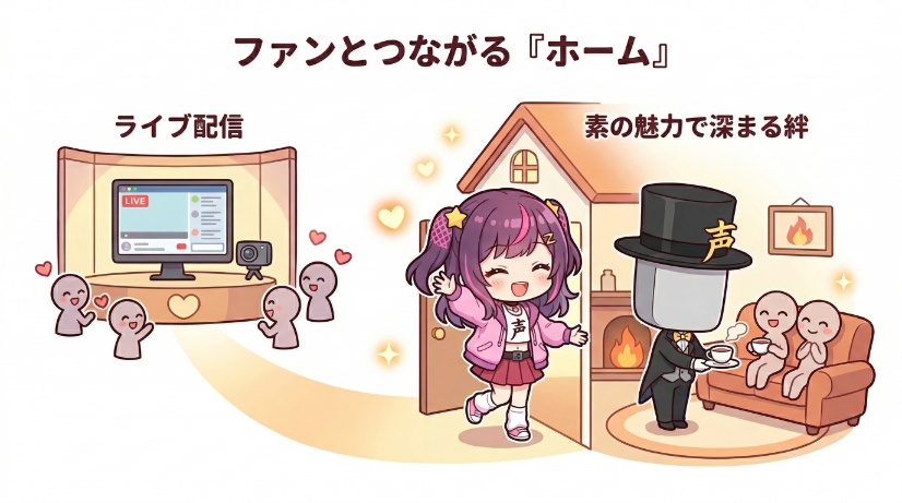 ここでは、完璧に演じる必要はありません。あなたの素に近い、人間的な魅力を見せることで、ファンとの絆を深めていく場所です。
