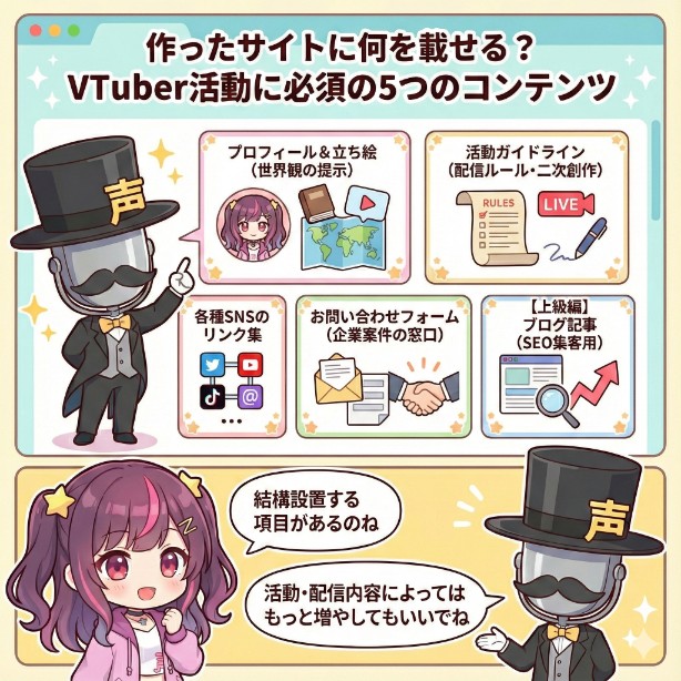ここまで、個人勢VTuberが公式サイトを持つべき理由と、その作り方について解説してきました。