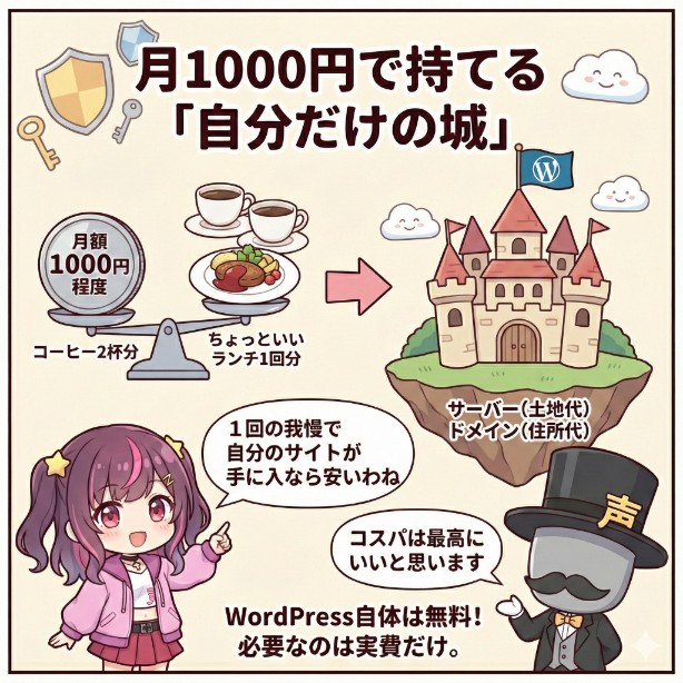 自分のサイトを持つことは、そうした外的な不安から身を守る「保険」です。「知識もないし、お金もかかる…」と不安になる気持ちも痛いほど分かります。