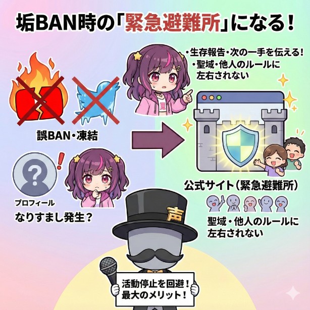 YouTubeの誤BANやX(旧Twitter)の凍結祭りに巻き込まれても、独自の公式サイトさえあれば、VTuber活動は決して「終わり」ではありません。