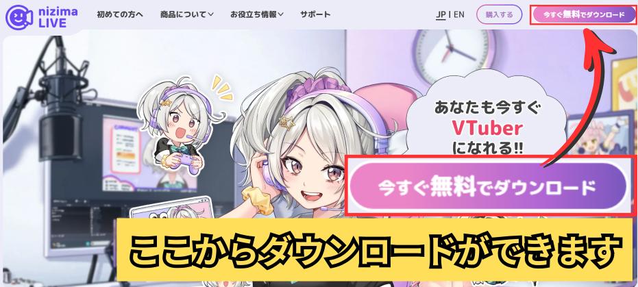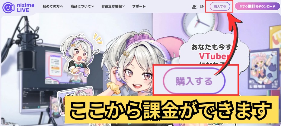 nizima LIVEの公式ページ右上にある「購入する」をクリック。↓