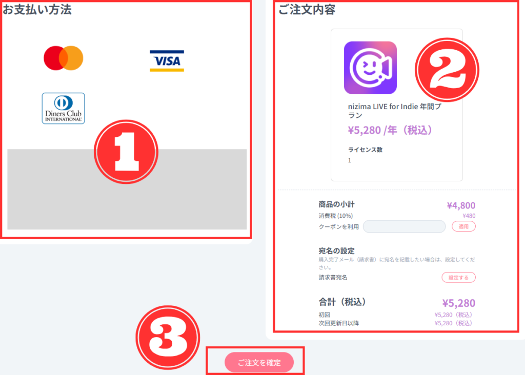 ※もしクーポンコードをお持ちの方は、画面にある入力欄にコードを入れて「適用」をクリックすることで適用されます。