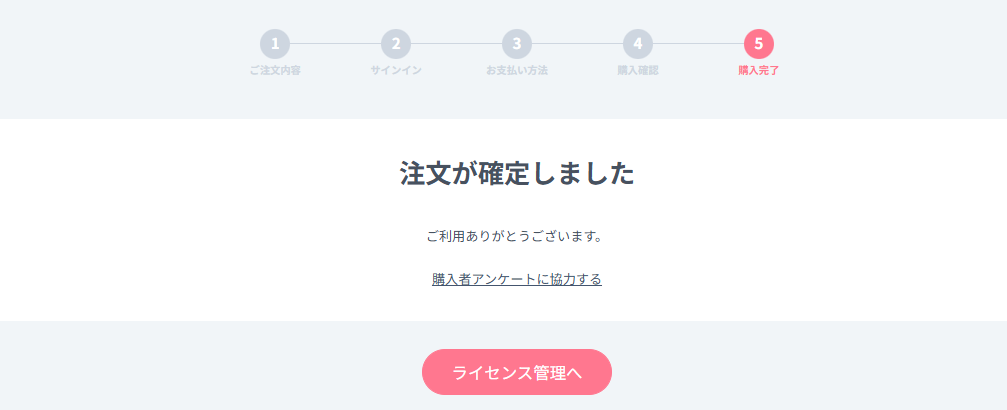 「注文が確定しました」と画面が表示されたら手続き完了です。↓
