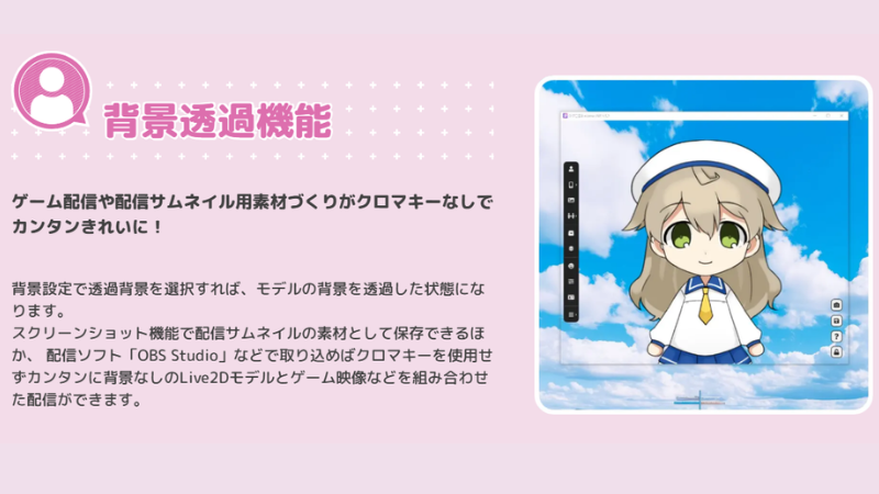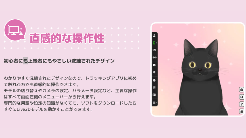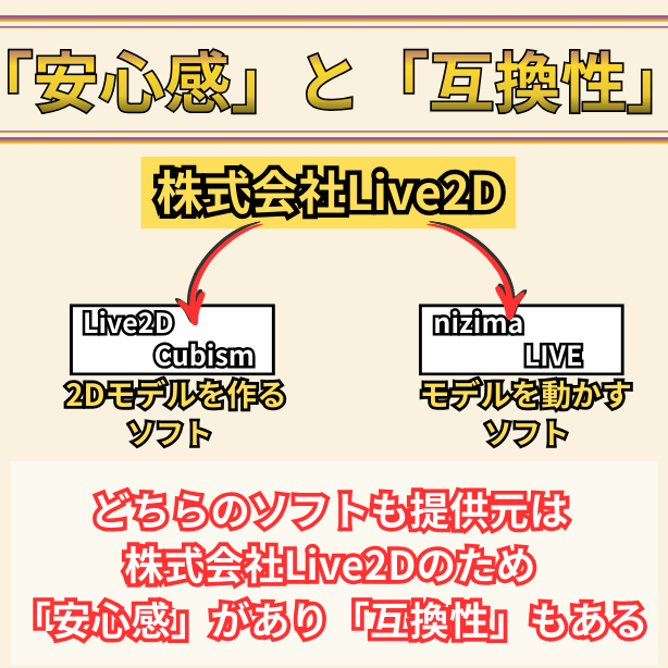 Live2Dモデルの仕様を最も熟知している開発チームが作っているため、他社製ソフトに比べて圧倒的に互換性が高く、不具合が起きにくいのが特徴です 。