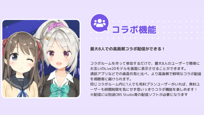 さらに、コラボ機能やアイテム配置など、配信を盛り上げる機能も充実しており、誰でも簡単にVTuber活動を始められます。