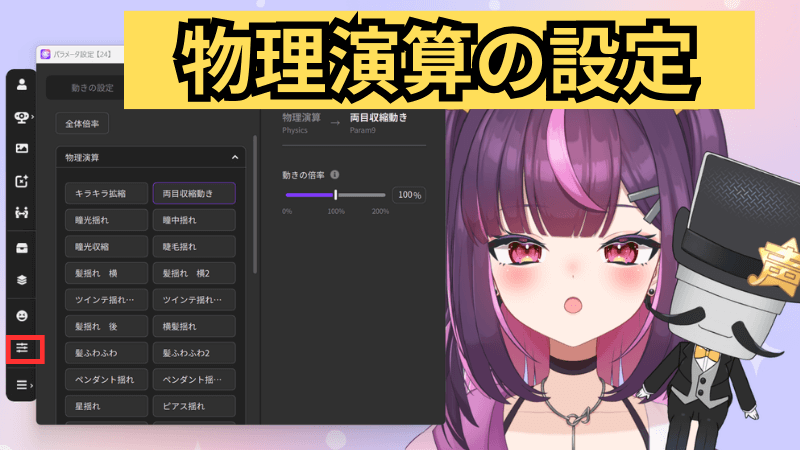 なぜなら、Live2Dモデルには、顔や体の動きに合わせて髪や服が自動で揺れる「物理演算」があらかじめ組み込まれていますが、デフォルトのままだと「揺れが大きすぎる」「逆に動きが硬い」と感じることがあるからです。