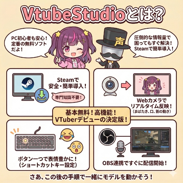 VTube Studioは、自分の2Dモデルを動かしてVTuber活動を始めるための、世界中で最も人気のある「定番ソフト」の1つです。