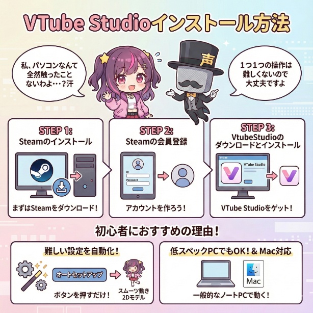 VTube Studioは、PCの専門知識に自信がない初心者の方にこそ、最もおすすめしたいトラッキングソフトです。