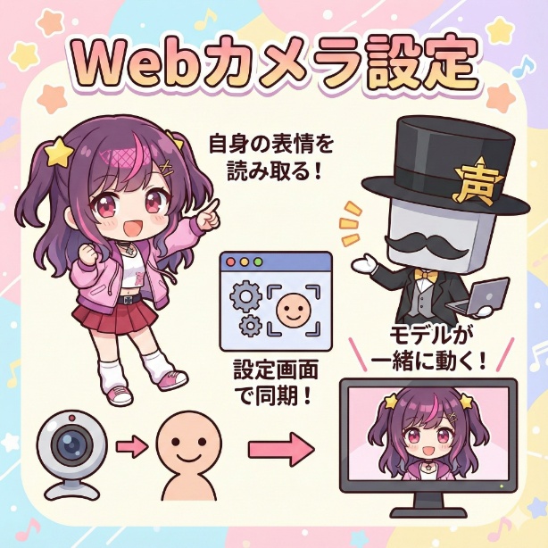 自身の表情とモデルの表情を同期させるためのWebカメラ設定