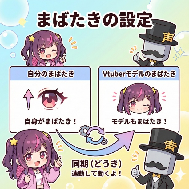 自身のまばたきとモデルのまばたきを同期させる設定