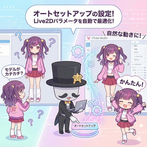 モデルを自然に動かすにはパラメータを設定する必要があります。オートセットアップはLive2Dのパラメーターに合わせてVTube Studioのパラメーター設定を自動で行う機能