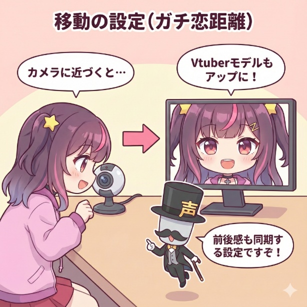 なぜならカメラに顔を近付けたり、逆に遠ざかると同期しているモデルが画面上でアップや縮小されたりするからです。