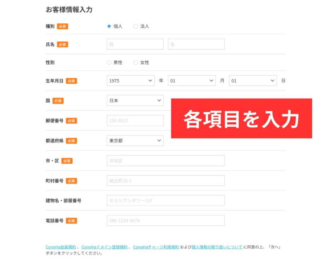 お客様情報の入力