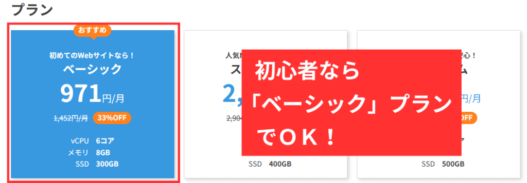 初心者の方であれば「ベーシック」プランで問題ありません。